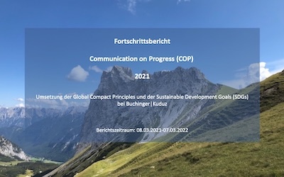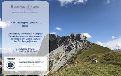 Die Verantwortung für die Umwelt und die Gesellschaft bilden wir in unseren Geschäftsprozessen ab. Daher arbeitet Buchinger|Kuduz schon seit 2020 nach den UN-Sustainable-Development-Goals (SDG) und ist im März 2021 auch dem United Nation Global Compact (UNGC) beigetreten. Der UNGC ist die weltweit größte Intiative für Unternehmensverantwortung und Nachhaltigkeit. Damit gehen wir einen weiteren Meilenstein auf unserem Weg zur verantwortungsvollen und nachhaltigen Transformation unseres Unternehmens.